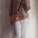 クロコとエナメルのショルダーベルトのコラボで、よりラグジュアリー感を演出しました。