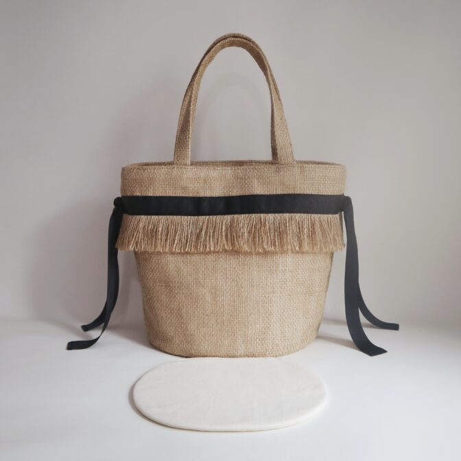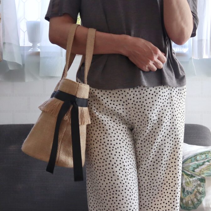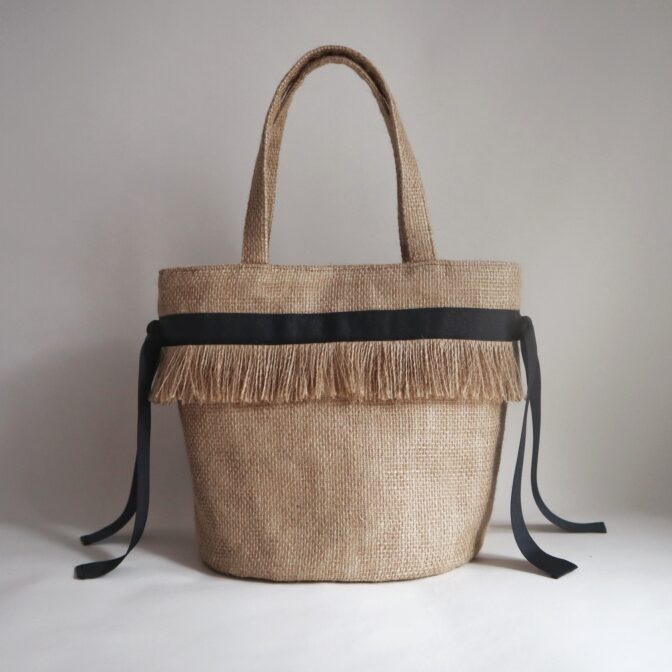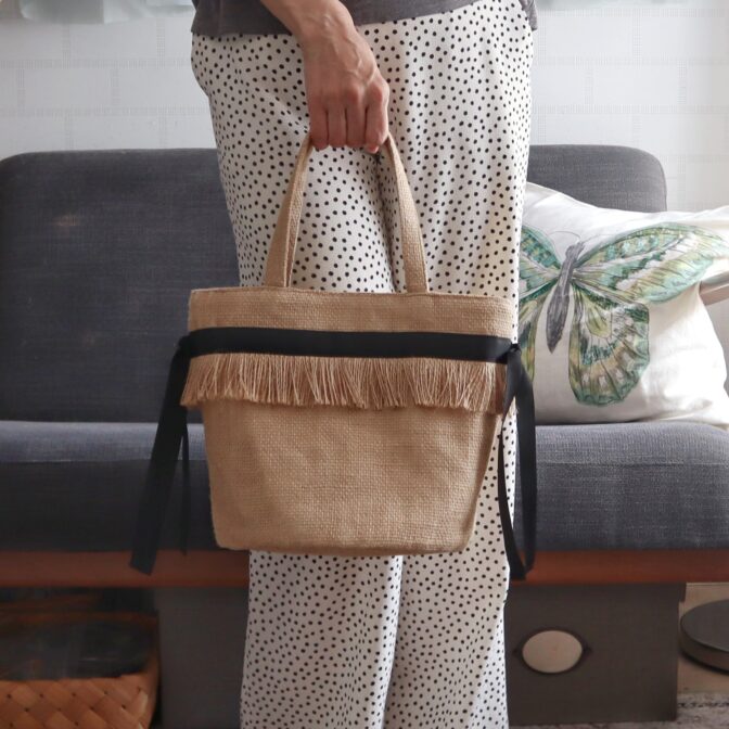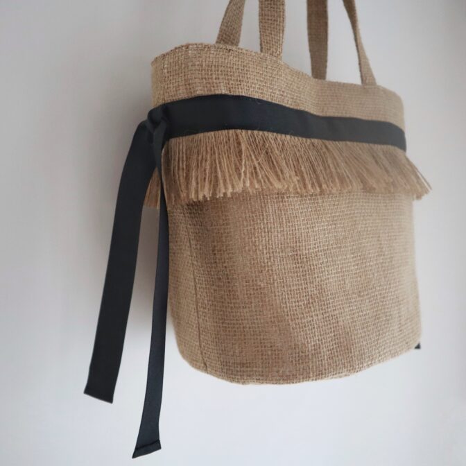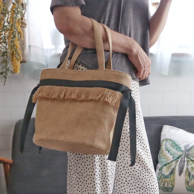 ジュートで作った夏にぴったりのカゴバッグ風バケツ型トートバッグです。