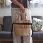 楕円形の丸底で、内布と同じ生地で包んだ底板付きですので、しっかりと自立し、型崩れを防ぎます。