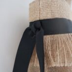 共布のジュートの横糸を取りフリンジにしたものを2重にし、ボリュームを出しております。