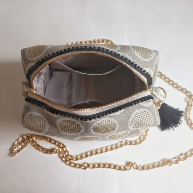 取り外し可能なチェーンが付いたショルダーポーチです。