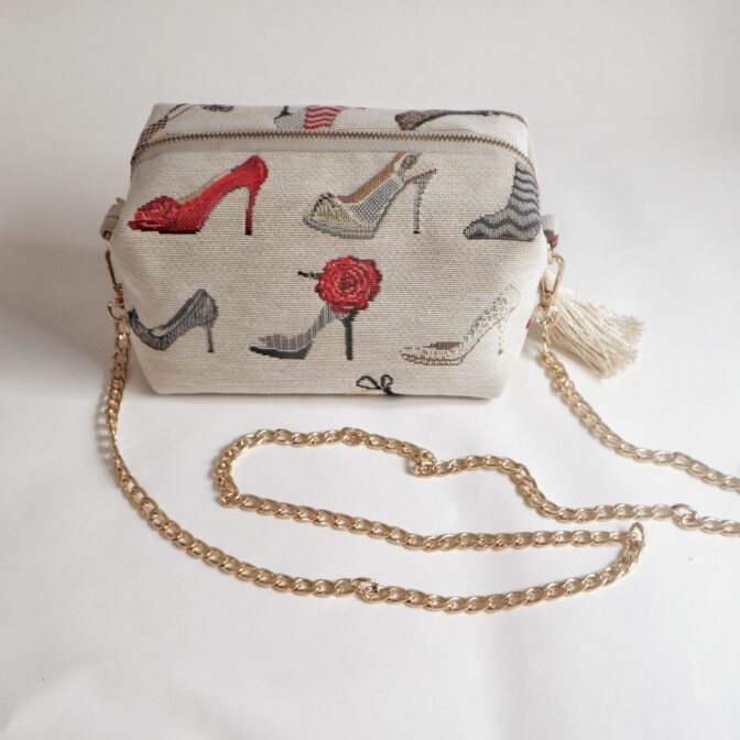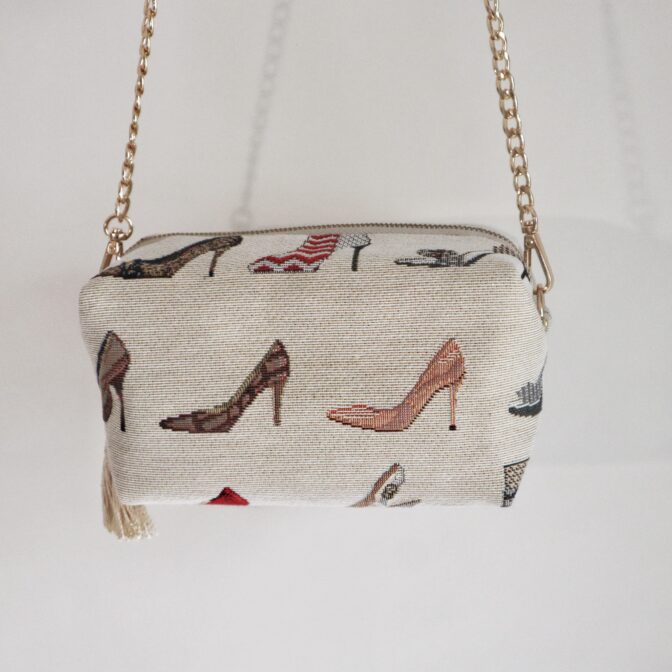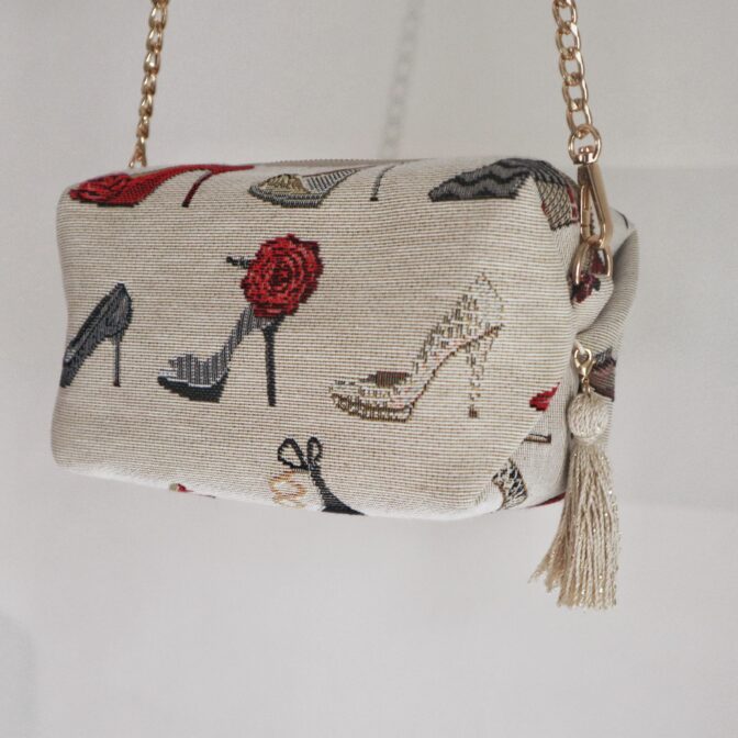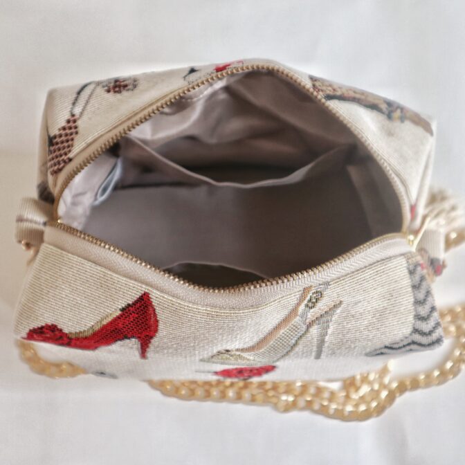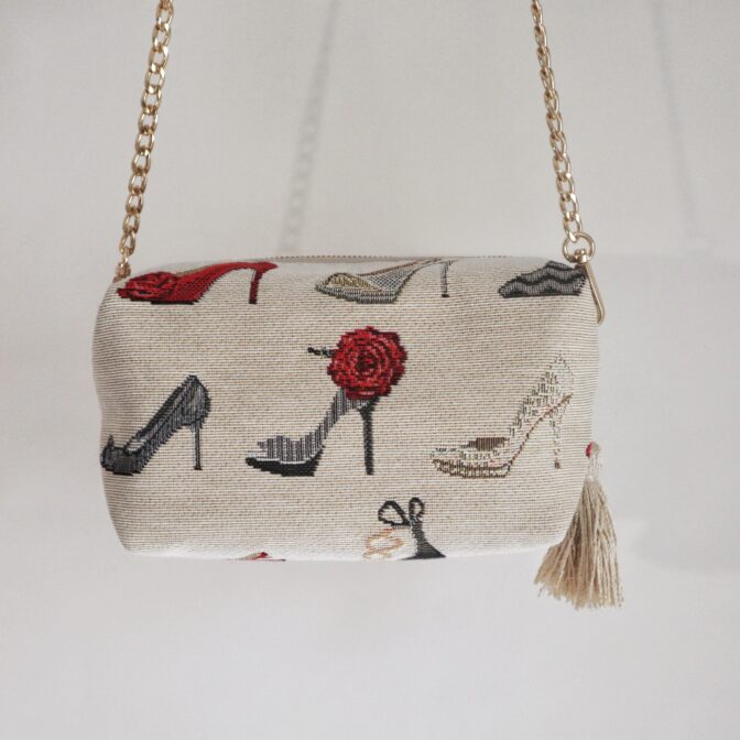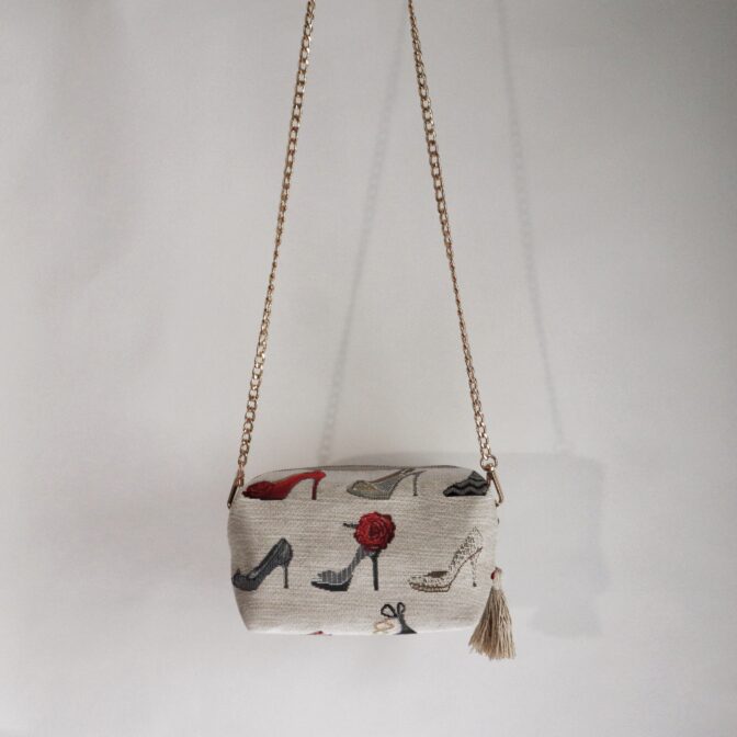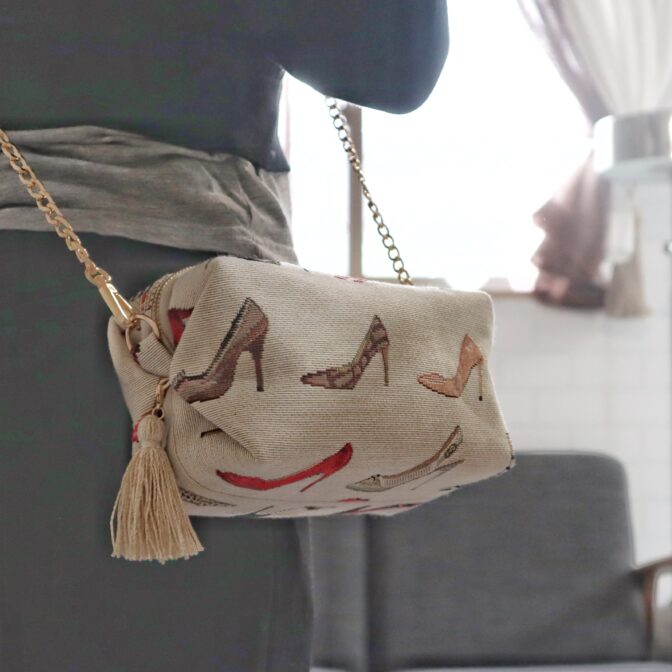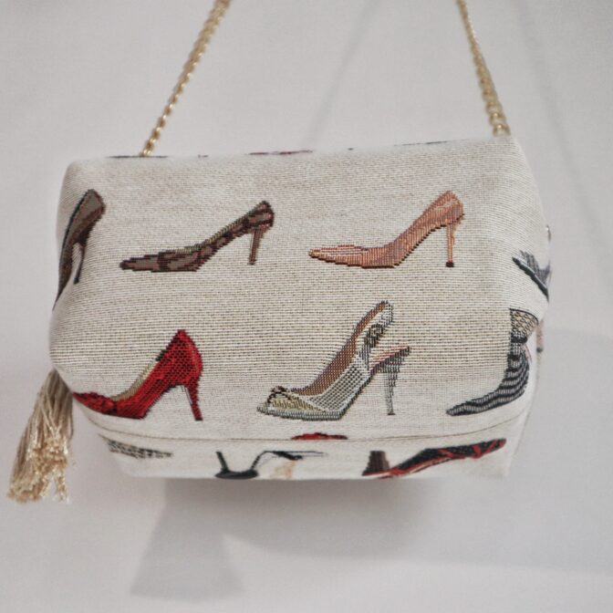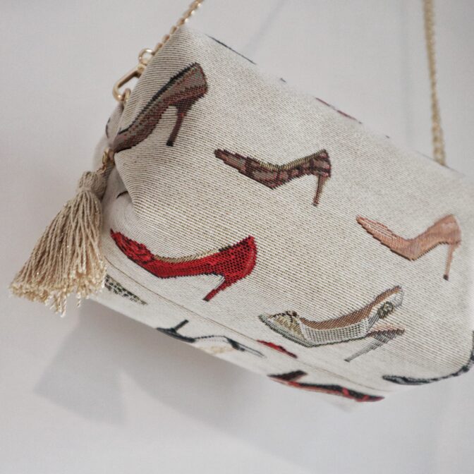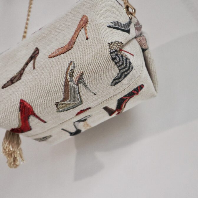 ピンヒールのゴブラン織りの柄がビンテージ感たっぷりで印象深いバッグとなっております。
