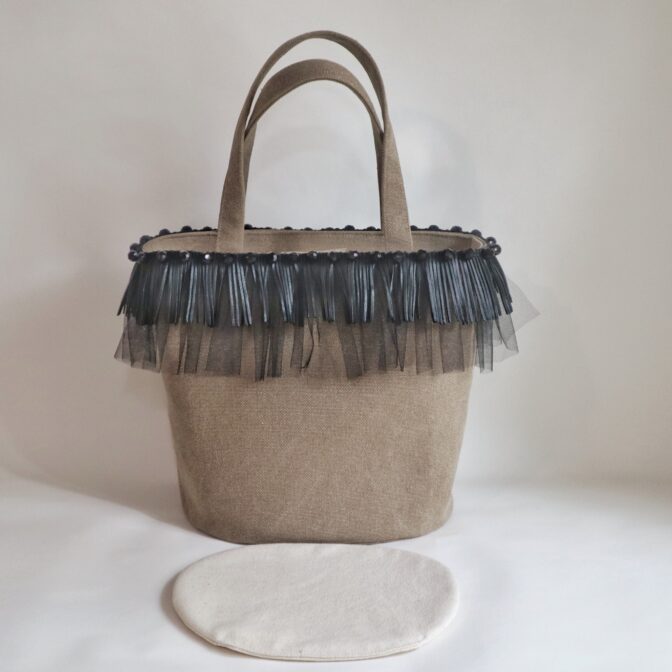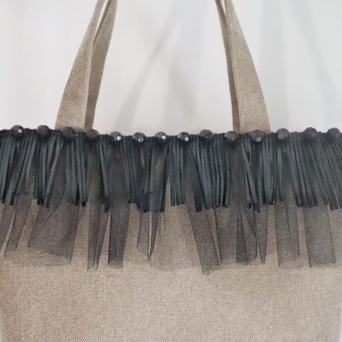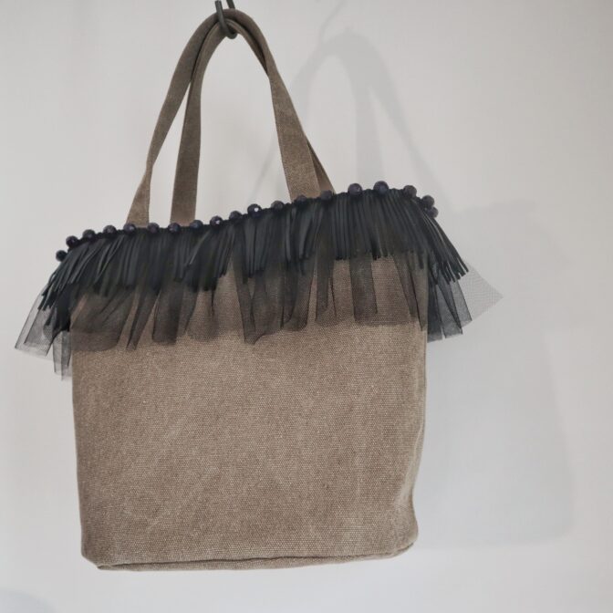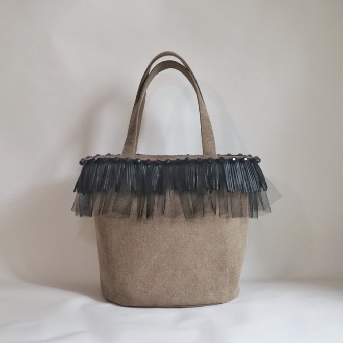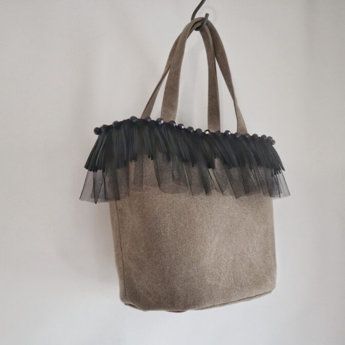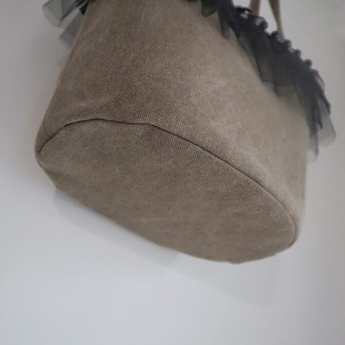 カジュアルな帆布がチュールの優しさを一段と表現してくれています。